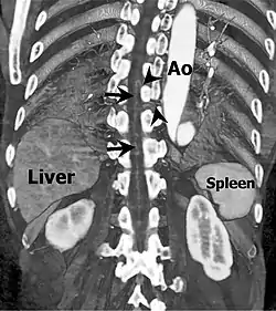 - Yoshioka, K.; Niinuma, H.; Ohira, A.; Nasu, K.; Kawakami, T.; Sasaki, M.; Kawazoe, K. (2003). "MR Angiography and CT Angiography of the Artery of Adamkiewicz: Noninvasive Preoperative Assessment of Thoracoabdominal Aortic Aneurysm". Radiographics. 23 (5): 1215–25. doi:10.1148/rg.235025031. PMID 12975511.