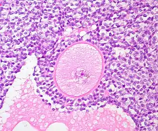The isolated follicles are then encapsulated within a 3D matrix and cultured for up to 4 weeks.[7] The material used has to meet biosafety and clinically compatible standards, such as adequate protection and support of the follicles and adaptability to human body temperature, if artificial ovaries are to be transplanted into a patient.[5] Potential materials are divided into synthetic polymers and natural polymers.[8] Synthetic polymers tend to be more predictable than natural polymers in terms of their rate of degradation and their mechanical properties can be tailored to the specific clinical requirements.[8] Although they contain no essential molecules for cell adhesion, bioactive factors can be incorporated to stimulate this.[8] The only synthetic polymer utilised so far has been poly(ethylene glycol), which developed immature mouse follicles into antral follicles and corpora lutea.[8][5]