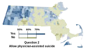 The Massachusetts Death with Dignity Initiative, a ballot measure to legalize aid in dying, was narrowly defeated in the 2012 general election, with 51% of voters against the proposal.