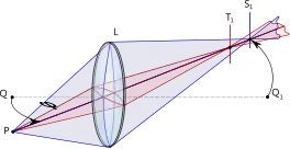 An optical system with astigmatism is one where rays that propagate in two perpendicular planes have different foci. If an optical system with astigmatism is used to form an image of a cross, the vertical and horizontal lines will be in sharp focus at two different distances. The term comes from the Greek α- (a-) meaning "without" and στίγμα (stigma), "a mark, spot, puncture".[1]