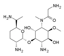 Astromicin (INN)(also frequently referenced in scientific journal articles as compounds Fortimicin A/B ) is an aminoglycoside antibiotic. Synthesized from Micromonospora olivasterospora(also named with additional o in olivoasterospora).[1][2]
