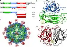 9. Dong J, Dong L, Méndez E, Tao Y (August 2011). "Crystal structure of the human astrovirus capsid spike". Proceedings of the National Academy of Sciences of the United States of America. 108 (31): 12681–6. Bibcode:2011PNAS..10812681D. doi:10.1073/pnas.1104834108. PMC 3150915. PMID 21768348.