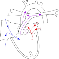 Normally, the four chambers of the heart divide oxygenated and de-oxygenated blood into separate pools. When holes form between the chambers, as in AVSD, the pools can mix. Consequently, arterial blood supplies become less oxygenated than normal, causing ischemia and cyanosis in distal tissues.[3] To compensate, the heart must pump a larger volume of blood to deliver enough oxygen, leading to cardiac enlargement and hypertrophy.[5]