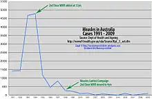 - Endemic measles declared eradicated from Australia in February 2009.[4]