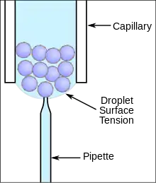 Many types of systems have been developed for patch clamping cells in suspension cultures. One system uses a traditional pipette and cells in a droplet suspension culture to obtain patch clamp recordings (see figure). This has the added benefit of using traditional pipette fabrication systems that heat a glass capillary and pull it lengthwise to create the tapered tip used in patch clamping.