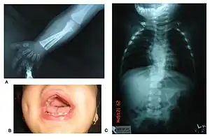 Two forms of the disorder exist, dominant and recessive, of which the former is more common. Patients with the dominant version often suffer moderately from the aforementioned symptoms. Recessive cases, on the other hand, are usually more physically marked, and individuals may exhibit more skeletal abnormalities.[2] The recessive form is particularly frequent in Turkey.[3] However, this can likely be explained by a common ancestor, as these patients' families can be traced to a single town in Eastern Turkey.[4] Clusters of the autosomal recessive form have also been documented in Oman and Czechoslovakia.[1]