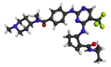 BI 811283 is a small molecule drug that selectively binds to the ATP binding pocket of Aurora B kinase, inhibiting its function in cell division.[1] The Aurora B kinase protein (also known as STK12) is one of a family of proteins that plays an essential role in the alignment, movement and separation of chromosomes during cell division. Aurora B kinase is produced in all dividing cells in normal tissue however; the levels of Aurora B kinase are abnormally raised in many types of cancer.[2][3][4][5][6][7][8][9][10] Abnormally elevated levels of Aurora B kinase, cause unequal chromosomal separation during cell division, resulting in the formation of cells with abnormal numbers of chromosomes, which are both a cause and driver of cancer.