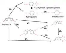 - Deborde M, Rabouan S, Mazellier P, Duguet JP, Legube B (October 2008). "Oxidation of bisphenol A by ozone in aqueous solution". Water Research. 42 (16): 4299–308. Bibcode:2008WatRe..42.4299D. doi:10.1016/j.watres.2008.07.015. PMID 18752822.