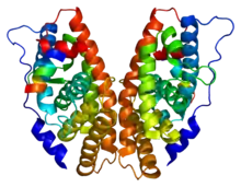 A 2007 study investigated the interaction between bisphenol A's and estrogen-related receptor γ (ERR-γ). This orphan receptor (endogenous ligand unknown) behaves as a constitutive activator of transcription. BPA seems to bind strongly to ERR-γ (dissociation constant = 5.5 nM), but only weakly to the ER.[28] BPA binding to ERR-γ preserves its basal constitutive activity.[28] It can also protect it from deactivation from the SERM 4-hydroxytamoxifen (afimoxifene).[28] This may be the mechanism by which BPA acts as a xenoestrogen.[28] Different expression of ERR-γ in different parts of the body may account for variations in bisphenol A effects. For instance, ERR-γ has been found in high concentration in the placenta, explaining reports of high bisphenol accumulation in this tissue.[27] BPA has also been found to act as an agonist of the GPER (GPR30).[29]