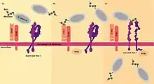 B. anthracis must evade the immune system to establish a successful infection. B. anthracis spores are immediately phagocytosed by macrophages and dendritic cells once they enter the host. The dendritic cells can control the infection through effective intracellular elimination, but the macrophages can transport the bacteria directly inside the host by crossing a thin layer of epithelial or endothelial cells to reach the circulatory system.[31] Normally, in the phagocytosis process, the pathogen is digested upon internalization by the macrophage. However, rather than being degraded, the anthrax spores hijack the function of the macrophage to evade recognition by the host immune system. Phagocytosis of B. anthracis spores begins when the transmembrane receptors on the extracellular membrane of the phagocyte interacts with a molecule on the surface of the spore. CD14, an extracellular protein embedded in the host membrane, binds to rhamnose residues of BclA, a glycoprotein of the B. anthracis exosporium, which promotes inside-out activation of the integrin Mac-1, enhancing spore internalization by macrophages. This cascade results in phagocytic cellular activation and induction of an inflammatory response.[32]