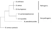 A phylogenomic analysis of the Cereus clade combined with average nucleotide identity (ANI) analysis revealed that the B. anthracis species also includes strains annotated as B. cereus and B. thuringiensis.[18]