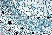 Light micrograph of a cross section of a coralloid root of a cycad, showing the layer that hosts symbiotic cyanobacteria