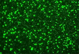Cyanobacteria are a large group of photosynthetic bacterioplankton, often growing as cells or in filamentous colonies.[1] These organisms are the dominant group of bacterioplankton using oxygenic photosynthesis in aquatic ecosystems. Cyanobacteria, along with photosynthetic eukaryotes, are responsible for approximately half of the total global primary production[2] making them key players in the food web. They use photosynthesis to generate energy in the form of organic compounds and produce oxygen as a byproduct.[3] Major light harvesting pigments include chlorophylls, phycoerytherin, phycocyanin and carotenoids.[4] The majority of cyanobacteria found in marine environments are represented by the genera Synechococcus and Prochlorococcus. Synechococcus is cosmopolitan, having been reported across temperate and tropical waters.[5] Prochlorococcus is a very small in size and is found mainly in the euphotic zone of tropical waters.[6][7] Factors including light, nutrients, and temperature can cause cyanobacteria to proliferate and form harmful blooms.[8] Cyanobacteria blooms can cause hypoxia and produce high levels of toxins, impacting other aquatic organisms as well as causing illnesses in humans.