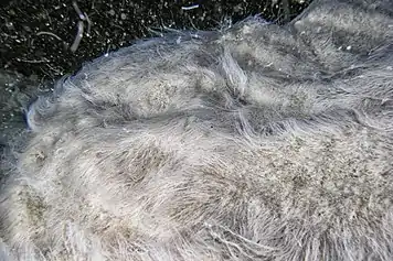 Filaments have been observed to form dense mats on sediments in a very huge variety of environments. They appear as a whitish layer and since they are present and flourish in marine environments which have been subject to pollution, they can be considered as an indicator species.[19] Beggiatoa and other related filamentous bacteria can cause settling problems in sewage treatment plants, industrial waste lagoons in canning, paper pulping, brewing, milling, causing the phenomenon called "bulking". Beggiatoa are also able to detoxify hydrogen sulfide in soil and have a role in the immobilization of heavy metals.[20][21]