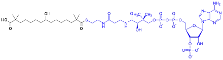 Bempedoic acid is a prodrug. It is activated to the thioester with coenzyme A by the enzyme SLC27A2 in the liver.[9] The activated substance inhibits ATP citrate lyase, which is involved in the liver's biosynthesis of cholesterol upstream of HMG-CoA reductase, the enzyme that is blocked by statins.[10][11]