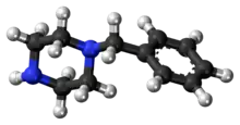BZP was first synthesized by Burroughs Wellcome & Company in 1944.[9] It is often claimed that it was originally synthesized as a potential antihelminthic (anti-parasitic) agent for use in farm animals,[10] but its synthesis is thought to pre-date their interest in piperazines as anthelmintics.[9] Even so, the majority of the early work with the piperazines were investigations into their potential use as anthelmintics, with the earliest clinical trials in the literature relating to piperazine being articles in the British Medical Journal in the 1950s.[11][12] It was discovered that BZP had side effects and was largely abandoned as a worm treatment. It next appears in the literature in the 1970s when it was investigated as a potential antidepressant medication,[9] but rejected when research reported that BZP had amphetamine-like effects and was liable to abuse. The study suggested that BZP "should be placed under statutory control similar to those regulating the use of amphetamine".[13]