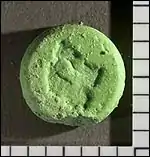 An impure 'ecstasy' tablet – seized by law enforcement in the United States – containing BZP, methamphetamine, and caffeine