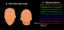 - Frohlich, Joel; Senturk, Damla; Saravanapandian, Vidya; Golshani, Peyman; Reiter, Lawrence; Sankar, Raman; Thibert, Ronald; DiStefano, Charlotte; Huberty, Scott; Cook, Edwin; Jeste, Shafali (December 2016). "A Quantitative Electrophysiological Biomarker of Duplication 15q11.2-q13.1 Syndrome". PLOS ONE. 11 (12): e0167179. Bibcode:2016PLoSO..1167179F. doi:10.1371/journal.pone.0167179. PMC 5157977. PMID 27977700.