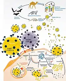Alpha- and betacoronaviruses mainly infect bats, but they also infect other species like humans, camels, and rodents.[13][14][15][16] Betacoronaviruses that have caused epidemics in humans generally induce fever and respiratory symptoms. They include: