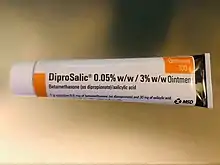 Brand names include Alphatrex, Beta-Val, Diprolene, Diprolene AF, Diprosalic (with salicylic acid)[14] Diprosone, Dovobet (LEO Pharma A/S),[15] Eleuphrat and Luxiq.