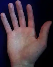 The spots also appear when the arms are slightly raised from the trunk (angle approx. 45°) and disappear again when the arms are stretched upwards.[3]