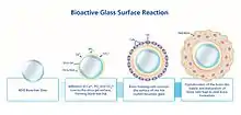 - Velez, Steven AyotteJon (2016-04-16), English: The integration of Bioglass with bone is shown in the image. The reaction with surrounding physiological fluid at the surface of Bioglass is shown in first two steps, and the formation of new bone is shown in the last two stages., retrieved 2020-11-13