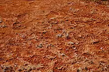 The formation of a biofilm begins with the attachment of free-floating microorganisms to a surface.[8][5] The first colonist bacteria of a biofilm may adhere to the surface initially by the weak van der Waals forces and hydrophobic effects.[15][16] If the colonists are not immediately separated from the surface, they can anchor themselves more permanently using cell adhesion structures such as pili. A unique group of Archaea that inhabit anoxic groundwater have similar structures called hami. Each hamus is a long tube with three hook attachments that are used to attach to each other or to a surface, enabling a community to develop.[17][18] Hyperthermophilic archaeon Pyrobaculum calidifontis produce bundling pili which are homologous to the bacterial TasA filaments, a major component of the extracellular matrix in bacterial biofilms, which contribute to biofilm stability.[19] TasA homologs are encoded by many other archaea, suggesting mechanistic similarities and evolutionary connection between bacterial and archaeal biofilms.[19]