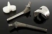 Biocompatibility is related to the behavior of biomaterials in various environments under various chemical and physical conditions. The term may refer to specific properties of a material without specifying where or how the material is to be used. For example, a material may elicit little or no immune response in a given organism, and may or may not able to integrate with a particular cell type or tissue. Immuno-informed biomaterials that direct the immune response rather than attempting to circumvent the process is one approach that shows promise.[33] The ambiguity of the term reflects the ongoing development of insights into "how biomaterials interact with the human body" and eventually "how those interactions determine the clinical success of a medical device (such as pacemaker or hip replacement)". Modern medical devices and prostheses are often made of more than one material, so it might not always be sufficient to talk about the biocompatibility of a specific material.[34] Surgical implantation of a biomaterial into the body triggers an organism-inflammatory reaction with the associated healing of the damaged tissue. Depending upon the composition of the implanted material, the surface of the implant, the mechanism of fatigue, and chemical decomposition there are several other reactions possible. These can be local as well as systemic. These include immune response, foreign body reaction with the isolation of the implant with a vascular connective tissue, possible infection, and impact on the lifespan of the implant. Graft-versus-host disease is an auto- and alloimmune disorder, exhibiting a variable clinical course. It can manifest in either acute or chronic form, affecting multiple organs and tissues and causing serious complications in clinical practice, both during transplantation and implementation of biocompatible materials.[35]