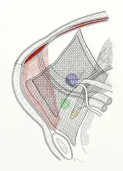 Biomesh (or biologic mesh) is a type of surgical mesh made from an organic biomaterial (such as porcine dermis, porcine small intestine submucosa, bovine dermis or pericardium, and the dermis or fascia lata of a cadaveric human). Biologic mesh is primarily indicated for several types of hernia repair, including inguinal and ventral hernias, hernia prophylaxis, and contaminated hernia repairs.[1][2] However, it has also been used in pelvic floor dysfunction, parotidectomy, and reconstructive plastic surgery.[2] The development of biologic mesh largely has derived from the need of a biocompatible material that addresses "the problems associated with a permanent synthetic mesh, including chronic inflammation, foreign body reaction, fibrosis, and mesh infection."[1][3] As of 2015, however, the efficacy and optimal use of biological mesh products remains in question.[2][3]