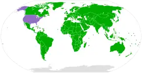 The Convention on Biological Diversity (CBD) came into force in 1993. It secured rights to control access to genetic resources for the countries in which those resources are located. One objective of the CBD is to enable lesser-developed countries to better benefit from their resources and traditional knowledge. Under the rules of the CBD, bioprospectors are required to obtain informed consent to access such resources, and must share any benefits with the biodiversity-rich country.[80] However, some critics believe that the CBD has failed to establish appropriate regulations to prevent biopiracy.[81] Others claim that the main problem is the failure of national governments to pass appropriate laws implementing the provisions of the CBD.[82] The Nagoya Protocol to the CBD, which came into force in 2014, provides further regulations.[83] The CBD has been ratified, acceded or accepted by 196 countries and jurisdictions globally, with exceptions including the Holy See and United States.[79]