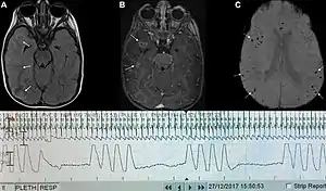 Biot's breathing or ataxic breathing, is an abnormal pattern of breathing characterized by variable tidal volume, random apneas, and no regularity.[1] It is named for Camille Biot, who characterized it in 1876.[2][3]