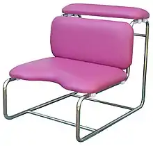 A birthing chair, also known as a birth chair, is a device that is shaped to assist a woman in the physiological upright posture during childbirth. It is intended to provide balance and support. If backless, it is known as a birth stool.