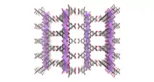 Crystal structure determination of bismuth subgallate revealed it is a coordination polymer with the formula [Bi(C6H2(O)3COOH)(H2O)]n2nH2O.[5] The phenolate oxygen atoms of the gallate ligand chelate to bismuth cations and form chains. The material is nanoporous and the open-channels can be filled with small gas molecules such as carbon dioxide.[5]