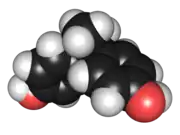 BPA has a fairly high melting point but can be easily dissolved in a broad range of organic solvents including toluene, ethanol and ethyl acetate.[37] It may be purified by recrystallisation from acetic acid with water.[38] Crystals form in the monoclinic space group P 21/n (where n indicates the glide plane); within this individual molecules of BPA are arraigned with a 91.5° torsion angle between the phenol rings.[39][40][41] Spectroscopic data is available from AIST.[42]