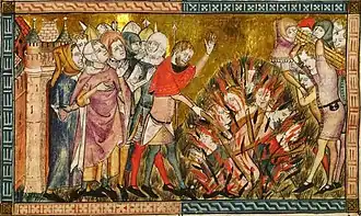 There were many attacks against Jewish communities.[144] In the Strasbourg massacre of February 1349, about 2,000 Jews were murdered.[144] In August 1349, the Jewish communities in Mainz and Cologne were annihilated. By 1351, 60 major and 150 smaller Jewish communities had been destroyed.[145] During this period many Jews relocated to Poland, where they received a warm welcome from King Casimir the Great.[146]