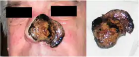 They are not recommended as treatments for skin lesions or skin cancer by medical authorities, but are marketed as such by some alternative medicine practitioners.[3][6] Use of escharotics, particularly when used instead of proven treatments, can be dangerous.[3][6] The escharotic may not remove all of the cancerous cells, and frequently removes healthy tissue.[3][6] Practitioners who use or sell escharotics frequently provide testimonials, in place of scientific evidence, to convince others of effectiveness and safety which does not exist.[3] Safer and more effective treatments exist for skin cancers, such as: cryotherapy; topical agents such as imiquimod, fluorouracil and ingenol mebutate; radiation therapy; and surgical excision, including Mohs surgery (microscopically controlled surgery used to remove and test cancerous tissue).[3]