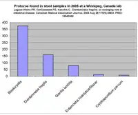 - A Canadian study of samples received in 2005 identified Blastocystis as the most prevalent protozoal infection identified.[91]