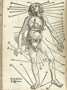 The Talmud recommended a specific day of the week and days of the month for bloodletting in the Shabbat tractate,[22] and similar rules, though less codified, can be found among Christian writings advising which saints' days were favourable for bloodletting. During medieval times bleeding charts were common, showing specific bleeding sites on the body in alignment with the planets and zodiacs.[21] Islamic medical authors also advised bloodletting, particularly for fevers. It was practised according to seasons and certain phases of the Moon in the lunar calendar. The practice was probably passed by the Greeks with the translation of ancient texts to Arabic and is different than bloodletting by cupping mentioned in the traditions of Muhammad. When Muslim theories became known in the Latin-speaking countries of Europe, bloodletting became more widespread. Together with cautery, it was central to Arabic surgery; the key texts Kitab al-Qanun and especially Al-Tasrif li-man 'ajaza 'an al-ta'lif both recommended it. It was also known in Ayurvedic medicine, described in the Susruta Samhita.