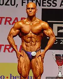 Bodybuilding is the use of progressive resistance exercise to build, control, and develop one's muscles via hypertrophy.[1] An individual who engages in this activity is referred to as a bodybuilder. It is primarily undertaken for aesthetic purposes over functional ones, distinguishing it from similar activities such as powerlifting, which focuses solely on gaining physical strength.