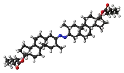 Bolazine capronate (INN) (brand name Roxilon Inject), also known as bolazine caproate or bolazine hexanoate, as well as di(drostanolone capronate) azine or 2α-methyl-5α-androstan-17β-ol-3-one 17β-hexanoate azine, is a synthetic, injected androgen/anabolic steroid (AAS) and derivative of dihydrotestosterone (DHT).[1][2] It is an androgen ester – specifically, the C17β hexanoate ester of bolazine.[1][2]