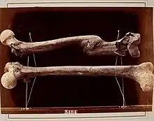 2. Non-union: no progression of healing within six months of a fracture occurring. The fracture pieces remain separated and can be caused by infection and/or lack of blood supply (Ischaemia) to the bone.[9] There are two types of non-union, atrophic and hypertrophic. Hypertrophic involves the formation of excess callus leading to bone ends appearing sclerotic causing a radiological "Elephants Foot" appearance[6] due to excessive fracture ends mobility but adequate blood supply.[4] Atrophic non-union results in re-absorption and rounding of bone ends[6] due to inadequate blood supply and excessive mobility of the bone ends.[4]