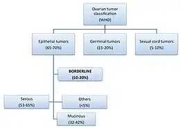 - Originally copied from: Abascal-Saiz A, Sotillo-Mallo L, de Santiago J, Zapardiel I (2014). "Management of borderline ovarian tumours: a comprehensive review of the literature". ecancermedicalscience. 8: 403. doi:10.3332/ecancer.2014.403. PMC 3931534. PMID 24605135.