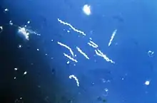 B. burgdorferi (B31 strain) was the third microbial genome ever sequenced, following the sequencing of both Haemophilus influenzae and Mycoplasma genitalium in 1995. Its linear chromosome contains 910,725 base pairs and 853 genes.[34] The sequencing method used was whole genome shotgun. The sequencing project, published in Nature in 1997 and Molecular Microbiology in 2000, was conducted at The Institute for Genomic Research.[35] Overall, B. burgdorferi's genome oddly consists of one megabase chromosome and a variety of circular and linear plasmids ranging in size from 9 to 62 kilobases.[23] The megabase chromosome, unlike many other eubacteria, has no relation to either the bacteria's virulence or to the host-parasite interaction.[34] Some of the plasmids are necessary for the B. burgdorferi life cycle but not for propagation of the bacteria in culture.[23]