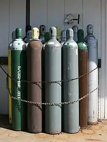 Because the contents are under high pressure and are sometimes hazardous, there are special safety regulations for handling bottled gases. These include chaining bottles to prevent falling and breaking, proper ventilation to prevent injury or death in case of leaks and signage to indicate the potential hazards.