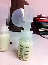 Most women that do not breastfeed use infant formula, but breast milk donated by volunteers to human milk banks can be obtained by prescription in some countries.[86] In addition, research has shown that women who rely on infant formula could minimize the gap between the level of immunity protection and cognitive abilities a breastfed child benefits from versus the degree to which a bottle-fed child benefits from them.[87] This can be done by supplementing formula-fed infants with bovine milk fat globule membranes (MFGM) meant to mimic the positive effects of the MFGMs which are present in human breast milk.[88]