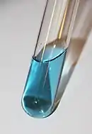 The Bradford assay uses the spectral properties of Coomassie brilliant blue G-250 to estimate the amount of protein in a solution.[18] A protein sample is added to a solution of the dye in phosphoric acid and ethanol. Under the acid conditions the dye is normally a brownish colour but on binding to the protein the blue form of the dye is produced. The optical absorbance of the solution is measured at a wavelength of 595 nm. The dye is noted for its high level of sensitivity: 5 μg of protein can be detected. However, among the disadvantages of the method is its variability of color development with different proteins: the absorbance change per unit mass of proteins varies with the type of the protein.[19]