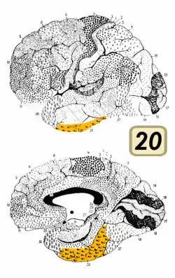 Brodmann area 20, or BA20, is part of the temporal cortex in the human brain. The region encompasses most of the ventral temporal cortex, a region believed to play a part in high-level visual processing and recognition memory.