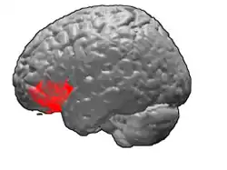 BA47 is thought to be related to the recognition of emotions. The emotions thought to be recognized by BA47 are fear, disgust, and anger. In a study conducted by R. Sprengelmeyer, M. Rausch, U.T. Eysel, and H. Pruzentek this hypothesis was tested be using an fMRI experiment on six healthy individuals with no prior neurological problems.[11] The individuals were shown 8 faces showing the emotions of fear, disgust, anger, or neutral. The fMRI image was taken after the subjects were shown the face for 3 seconds. BA 47 showed increased activity when the subject was shown the emotions of fear, disgust, and anger.