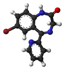 Bromazepam, sold under many brand names, is a benzodiazepine. It is mainly an anti-anxiety agent with similar side effects to diazepam (Valium). In addition to being used to treat anxiety or panic states, bromazepam may be used as a premedicant prior to minor surgery. Bromazepam typically comes in doses of 3 mg and 6 mg tablets.[2]