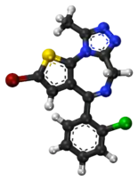 Brotizolam[2] (marketed under brand name Lendormin) is a sedative-hypnotic[3] thienotriazolodiazepine[4] drug which is a benzodiazepine analog.[5] It possesses anxiolytic, anticonvulsant, hypnotic, sedative and skeletal muscle relaxant properties, and is considered to be similar in effect to other short-acting hypnotic benzodiazepines such as triazolam or midazolam.[6] It is used in the short-term treatment of severe insomnia. Brotizolam is a highly potent and short-acting hypnotic, with a typical dose ranging from 0.125 to 0.25 milligrams, which is rapidly eliminated with an average half-life of 4.4 hours (range 3.6–7.9 hours).[7]